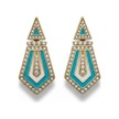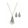 Turkuaz Taşlı Geometrik Desenli Çelik Kolye Ve Küpe Takımı Çok Renkli