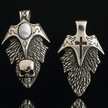 Turkuaz Taşlı Paslanmaz Çelik Gotik Kafatası Ve Haç Kolye Gümüş