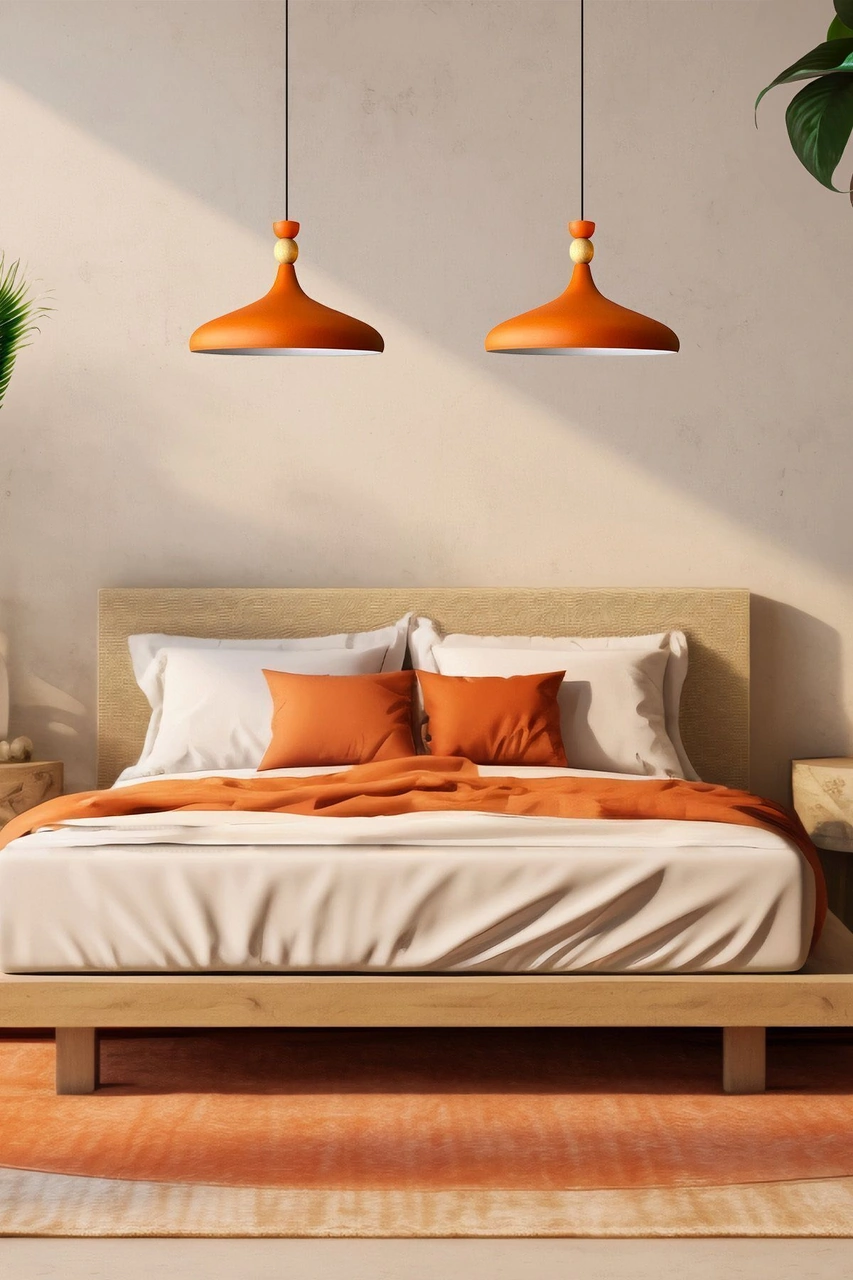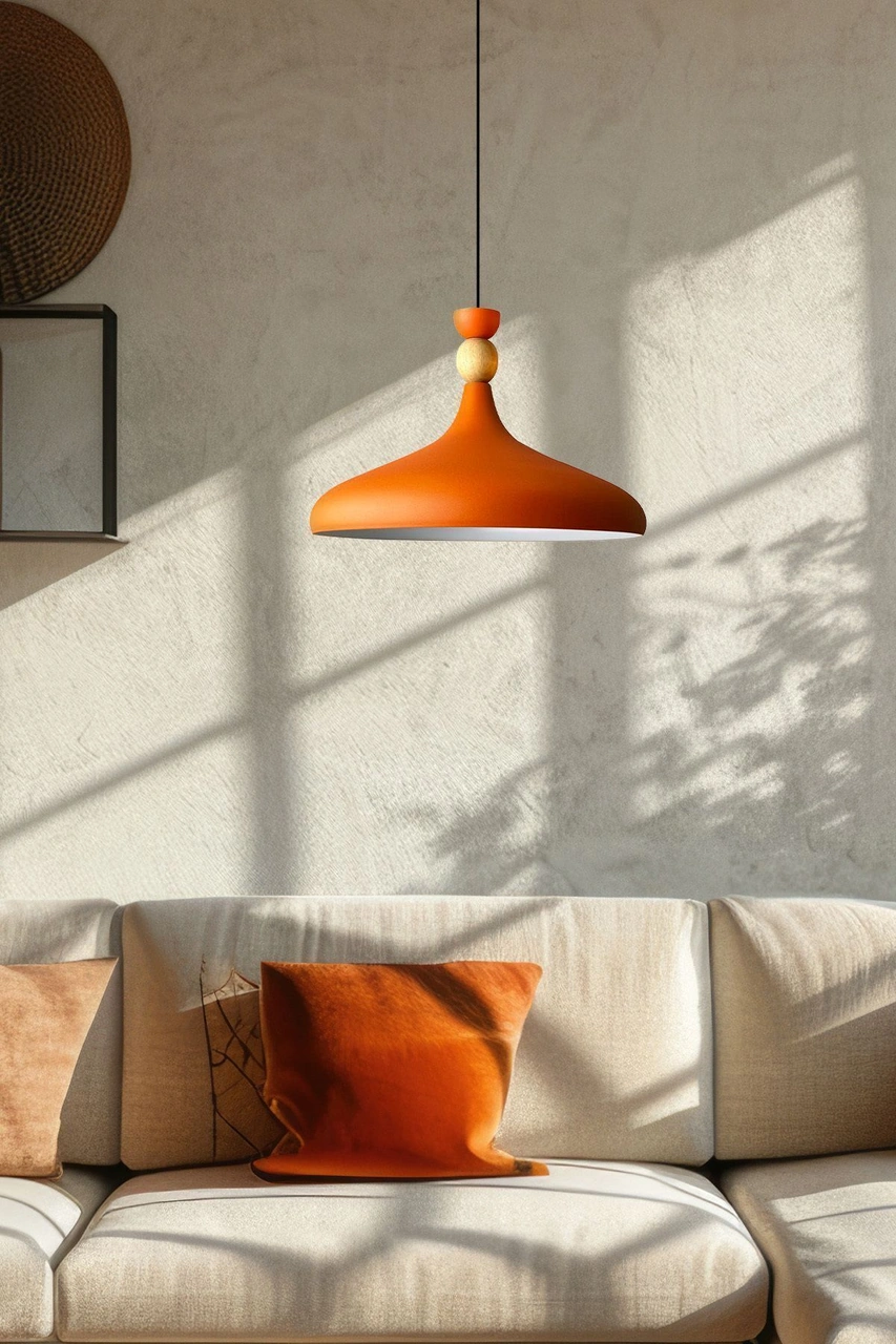 Turuncu Ahşap Şapka Tekli Avize Sarkıt Salon Mutfak Cafe Butik Lamba Aydınlatma Avizeler Turuncu