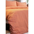 Turuncu Çizgili Keten Nevresim Yastık Seti Tek Kişilik 160x220 Cm Renkli
