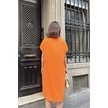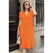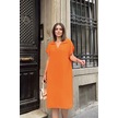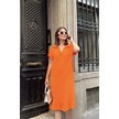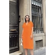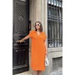 Turuncu Kısa Kol, Polo Yaka, Dokulu Kumaş, Basic Kalıp/kesim, Aerobin Rahat Midi Elbise Turuncu