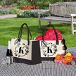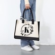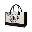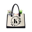Tuval El Çantası Mektuplar Çiçek Taşınabilir Plaj Omuz Alışveriş Tote Çanta A425 Siyah