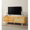 Tv Sehpası 2 Çekmeceli 1 Hasır Kapaklı Natural Ağaç 180cm Kurulu Gönderilir Naturel