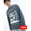 Tvoe Antik Heykel Baskılı Oversize Uzun Kollu Erkek Tişört 479789516 Koyu Gri