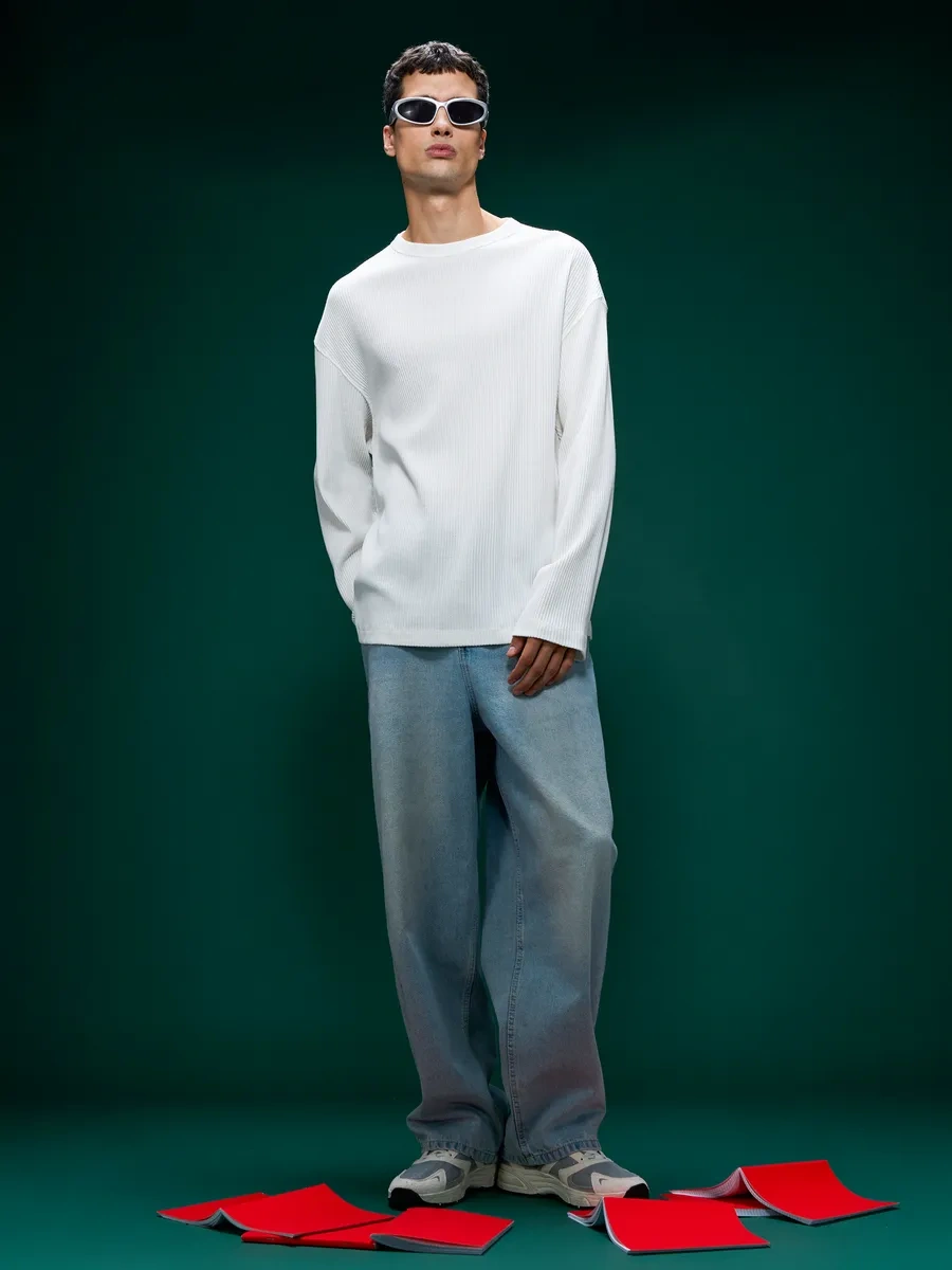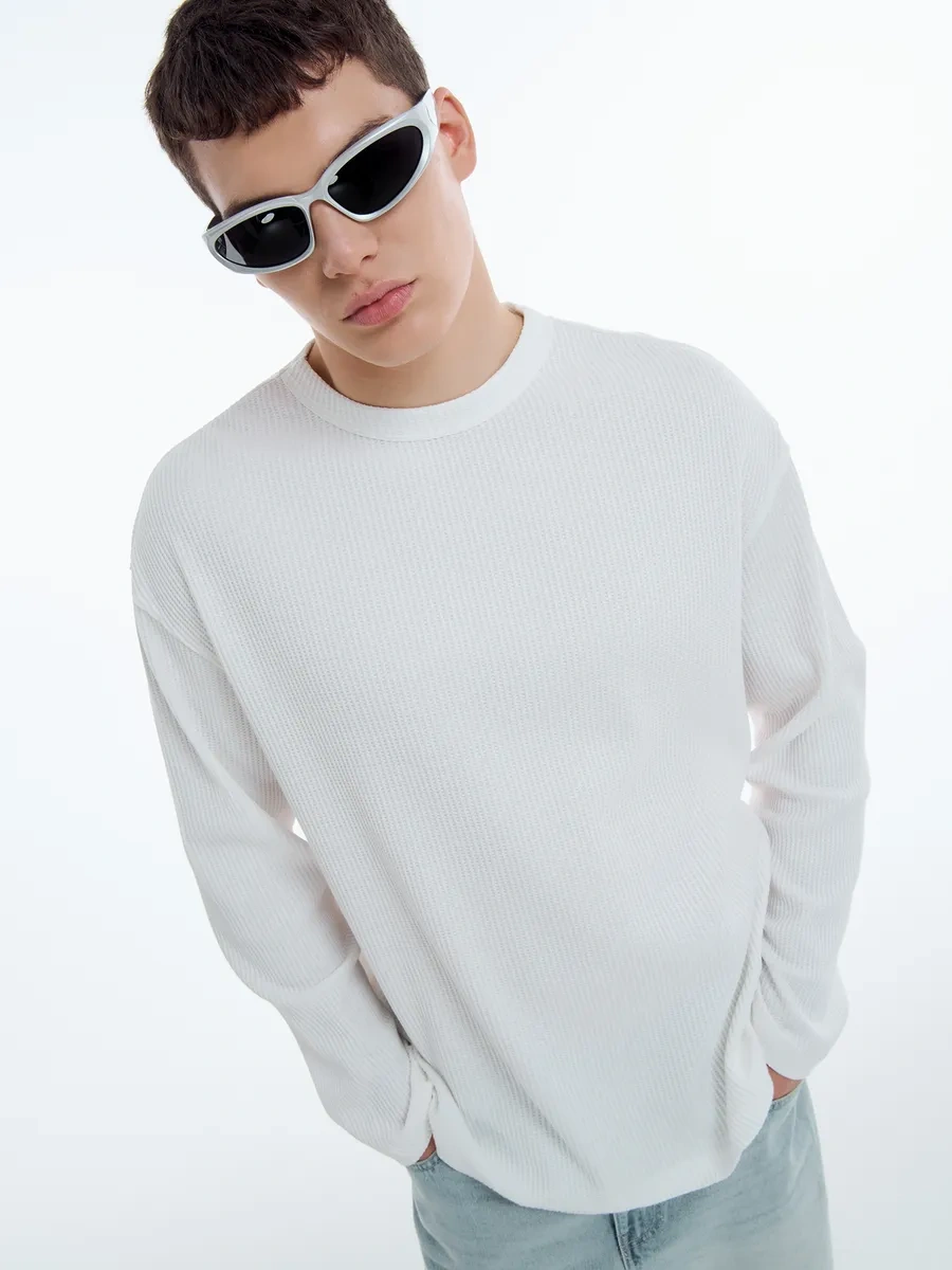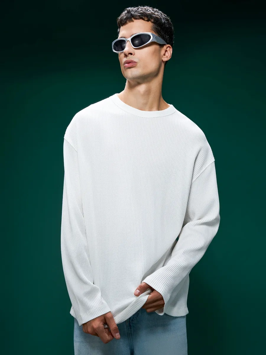 Tvoe Temel Wafer Uzatılmış Kol Süveter 451270141 Beyaz