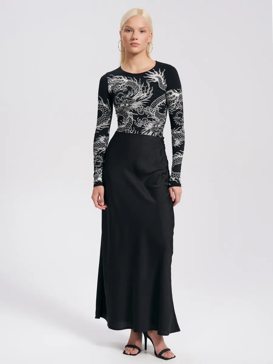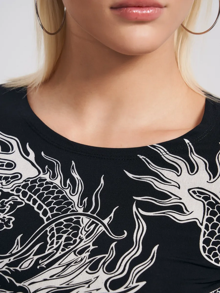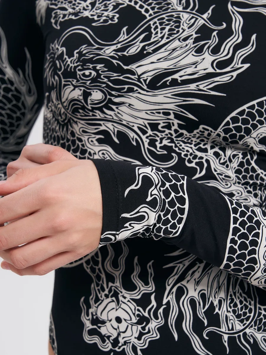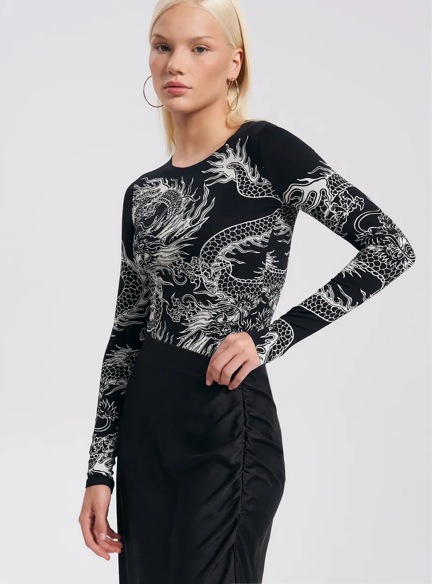 Tvoe Uçan Ejderha Baskılı Uzun Kollu Body 175917878 Siyah