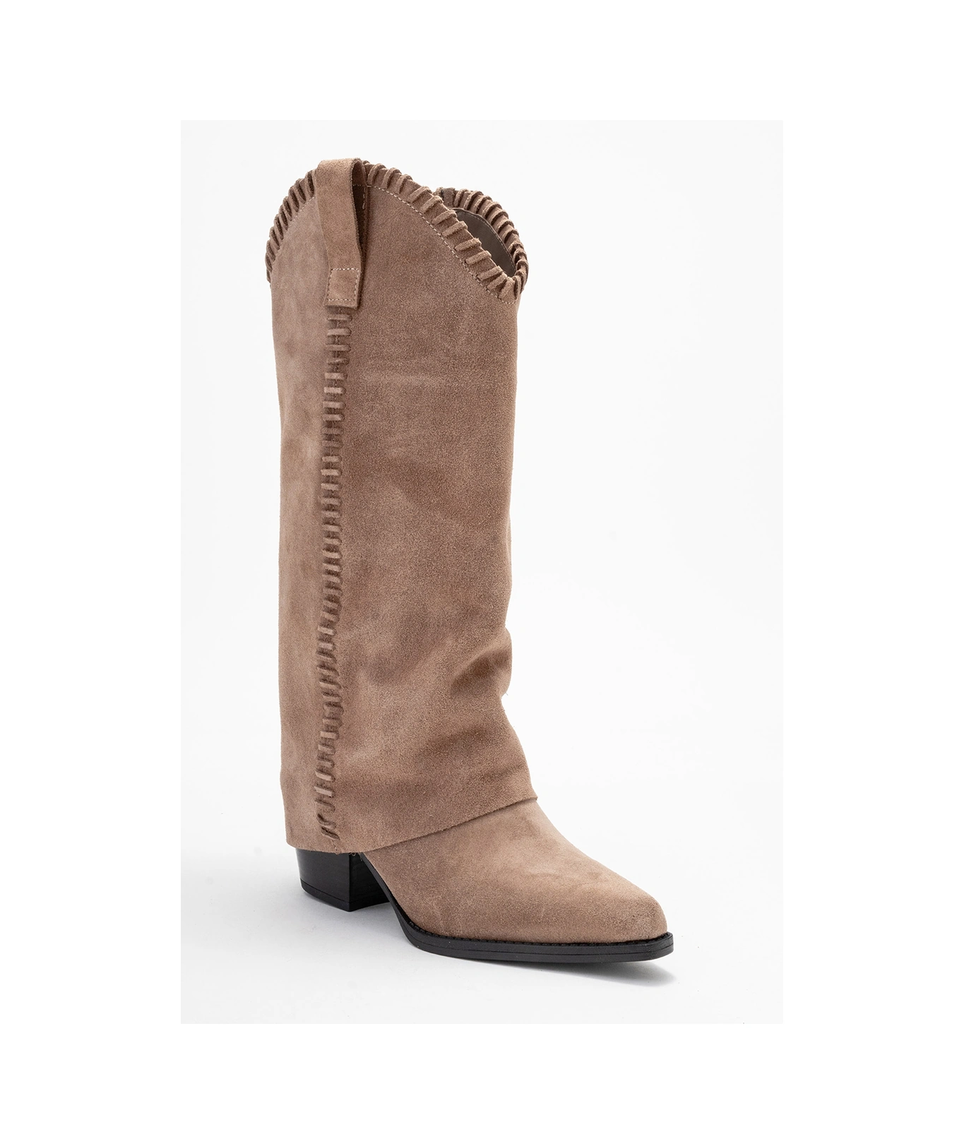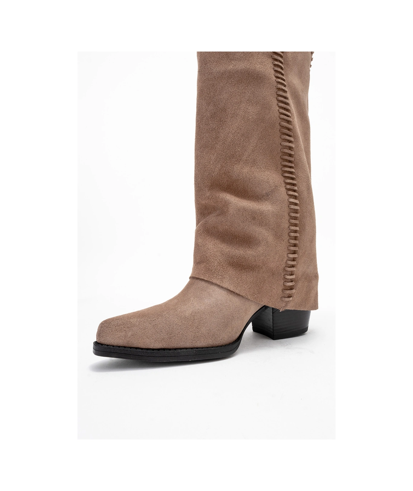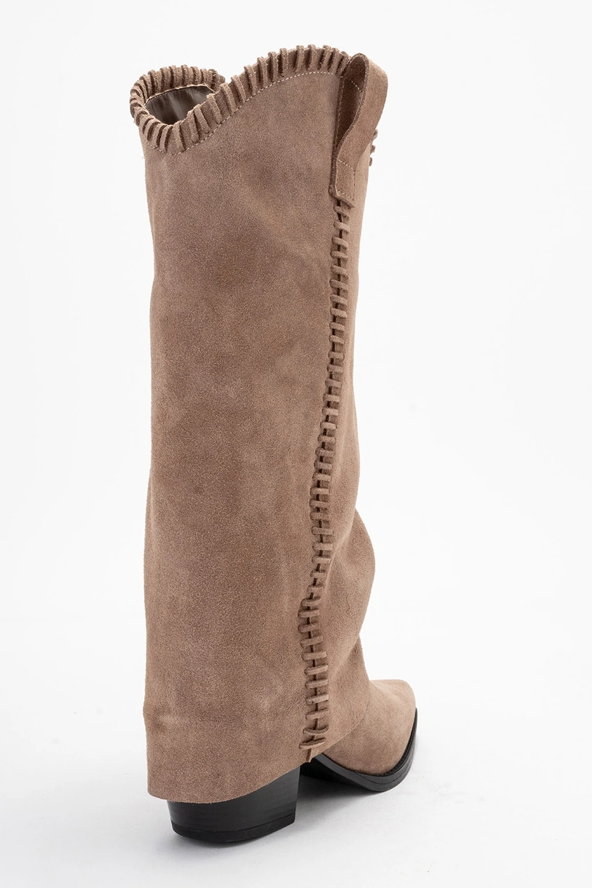 Tyler Toprak Süet Hakiki Deri Dikişli Kadın Western Çizme Toprak
