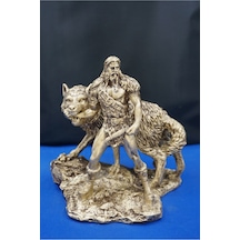 Tyr Savaş Tanrısı Heykeli - Kurtlu Try Biblo - 26 Cm Mitolojik Obje Hediyelik Dekor Gümüş
