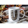 U Baş Harf Leopar Desenli Kupa Bardak - Kişiye Özel Feminen Konsept Hediye - Vahşi Hayvan Desenli Beyaz