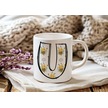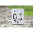 U Harfi Arı Desenli Kupa - Sevimli Hayvan Temalı Kişiye Özel Kahve Kupası - Şans Kupası Beyaz