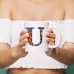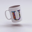 U Harfi Bardak 330 Ml İsme/harfe Özel Hediye, Renkli Harf Tasarım Beyaz