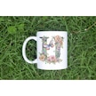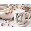 U Harfi Çiçekli Kupa Bardak - Soft Renk Çiçek Ve Kelebek Desenli Zarif Kahve Kupası - Bohem Beyaz