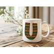 U Harfi Etnik Desenli Kupa - Afrika Tarzı Kahve Çay Kupası - Hediyelik - Black History Beyaz
