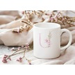 U Harfi Pembe Çiçek Desenli Kupa Bardak - Zarif Pembe Çiçek Tasarım Kahve Çay Kupası - Hediye Beyaz