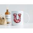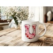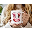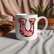 U Harfi Pembe Kareli Kalpli Göz Emojili Kupa Bardak Eğlenceli Kareli Tasarım Kahve Çay Kupası 07 Beyaz