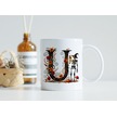U Harfi Şapkalı İskelet Figürlü Ve Çiçekli Kupa Bardak - Cadılar Bayramı / Halloween Özel Hediye Beyaz