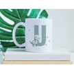 U Harfi Sevimli Dinozor Kupa Bardak - Açık Yeşil Yıldız Detaylı Dino Tasarım - Hediye Beyaz