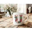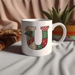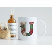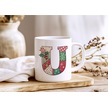U Harfi Yılbaşı Temalı Kupa Bardak - Yeni Yıl Konsept Yamalı Efekt Tasarım - Noel Hediye Beyaz