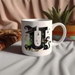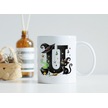 U Harfli Halloween Kedili Figür Kupa Bardak - Şapkalı Ve Kazanlı İsme Özel Kupa - Hediye 07 Beyaz