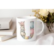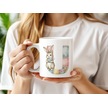 U Harfli Tavşan Kupa - Patchwork / Yamalı Desenli İsme Özel Kupa - Pastel Vintage Tarz Hediyelik Beyaz