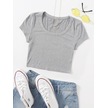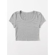 U Yaka Gri Renk Fitilli Kısa Kollu Regular Crop Top Bluz Gri