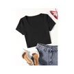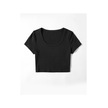 U Yaka Siyah Renk Fitilli Kısa Kollu Regular Crop Top Bluz Siyah