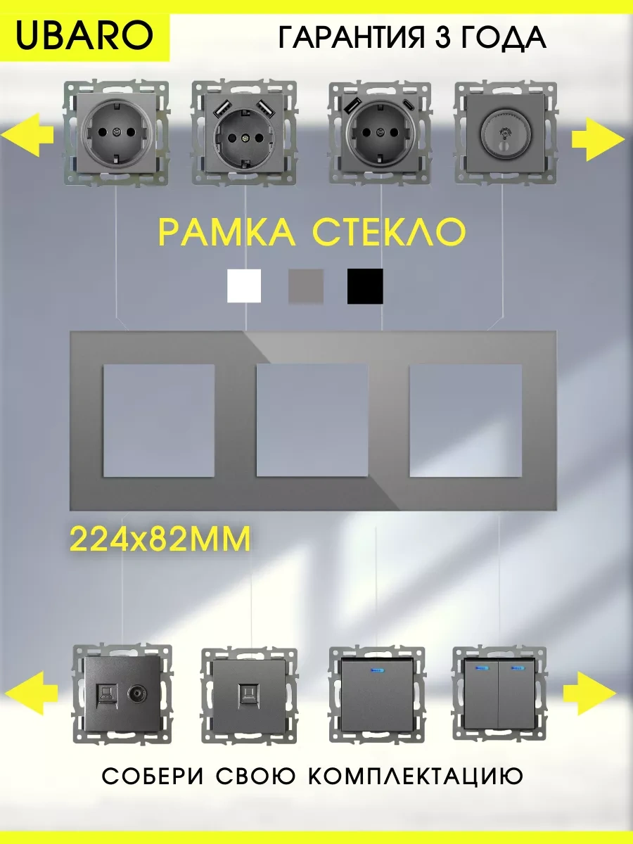 Ubaro Priz Ve Anahtarlar İçin Üçlü Çerçeve Cam 224x82 224028642 Priz Çerçevesi