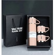 Üç Bardaklı Kutulu Paslanmaz Termos Seti Ekru 500 ML Çelik Termos