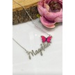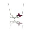 Üç Boyutlu Kırmızı Kelebek Özel Font Isim Yazılı 925 Gümüş Kolye