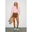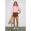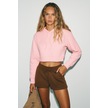 Üç İplik Kapüşonlu Crop Sweat Pembe