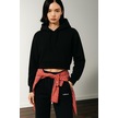 Üç İplik Kapüşonlu Crop Sweat Siyah