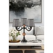 Üçlü Şamdan Masa Lambası Abajur Siyah Siyah Rattan Hasır Şapkalı Siyah