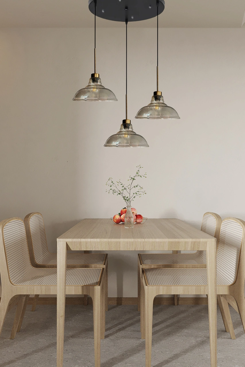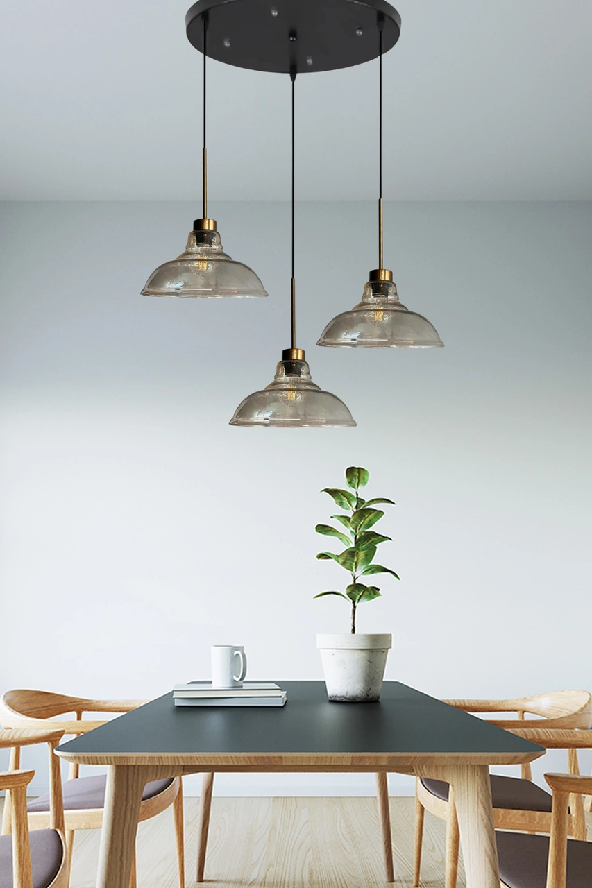 Üçlü Vishi Cam Bal Rengi Avize İnce Eskitme Başlık Retro Sarkıt Lamba Restoran Salon Aydınlatma Bal