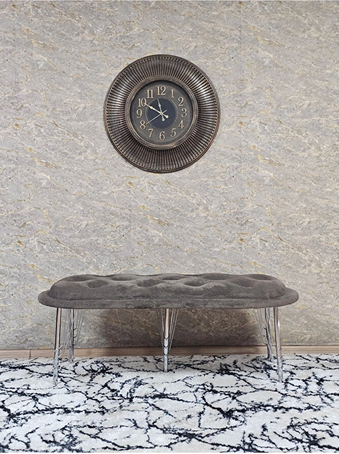 Gazzini Furniture Diana Slim Line Luxury Havlu Kumaş Silindir Makyaj Masası Puf Gri