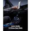 Ugreen 30w 3 Portlu Araç İçi Şarj Cihazı Çakmaklık Adaptörü, 45843