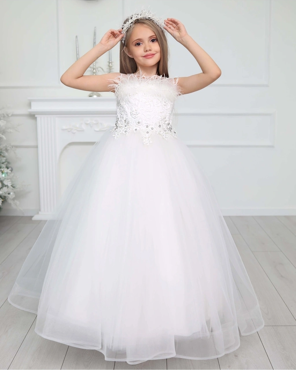 Uğur Böceği Çocuk Tüylü Incili Abiye Taçlı 2'li Set Takım Beyaz