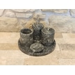 Uludağ Siyahı Mermer 5'li Banyo Seti Köşe Tepsili Beyaz
