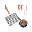 Ulzyvf Ahşap Saplı Ve Sosisli Şişli Sandviç Silindiri, Gümüş Barbekü, 4'lü Gümüş