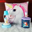 Unicorn Işıklı Biblo Masa Gece Lambası Puf Yastık Unicorn Kalemliklik Hediye Seti