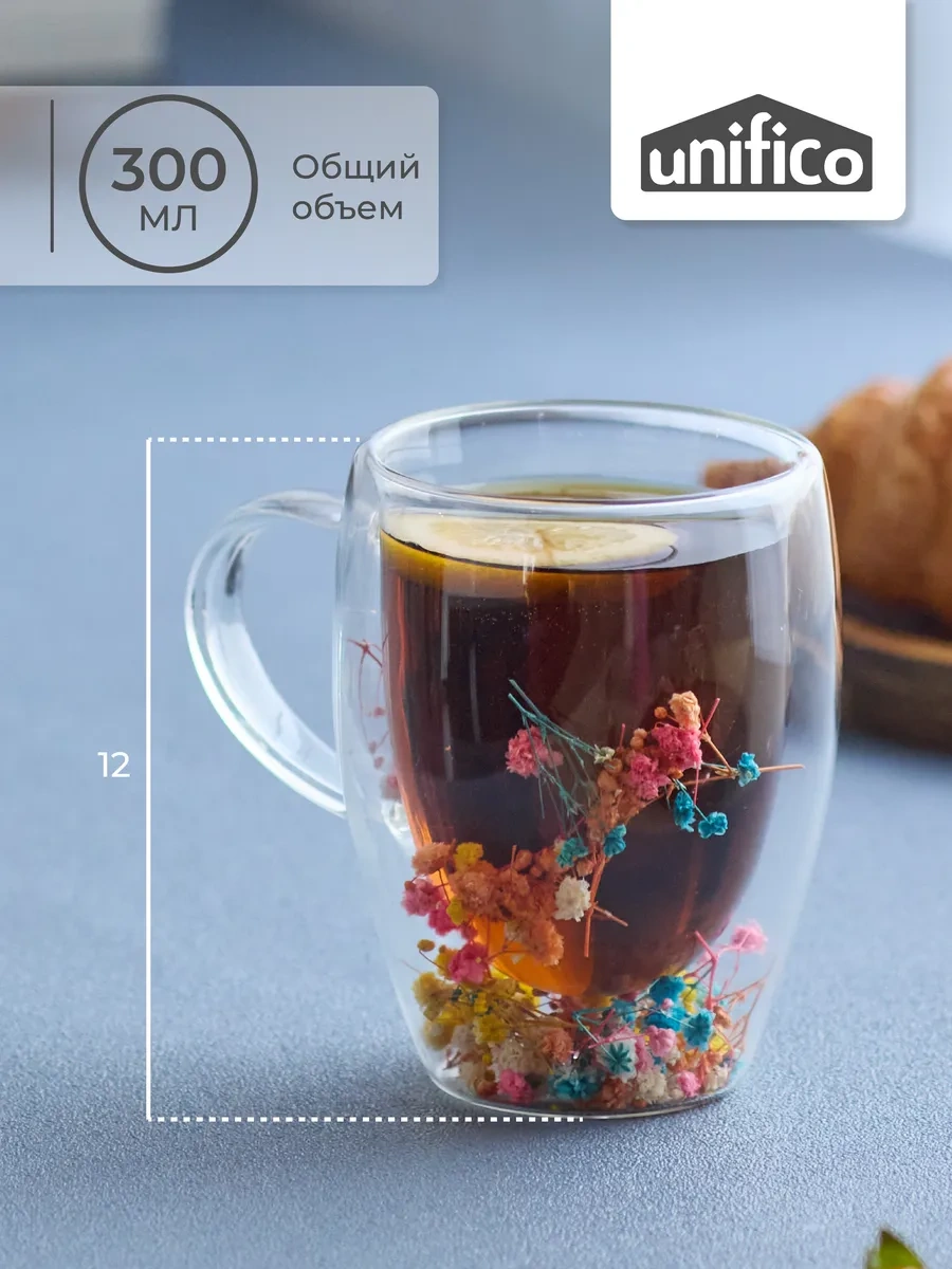 Porsima 2090 Leafy Çift Cidarlı Cam Çay Kahve Kupası Isı Yalıtımlı Kulplu Cam Bardak 2 Adet 250ml Şeffaf