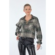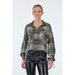Unique Mode Düz Yaka Kareli Uzun Kollu Siyah Kadın Gömlek Uw23380 001