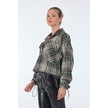 Kadın Desen Bloklu Oduncu Oversize Bol Ve Geniş Kalıp Casual Cepli Yakalı Ceket Gömlek Sarı