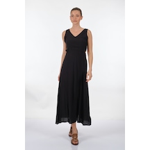 Siyah Ribana Elbise V Yaka Siyah
