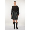 Unique Mode Yuvarlak Yaka Deri Detaylı Siyah Kadın Elbise UW23351