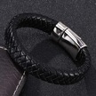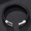 Üniseks Örgülü Hakiki Deri Bileklik Paslanmaz Çelik Tokalı Kadınlar Erkekler İçin Hediye Trend Takı Dokuma Bileklik Siyah