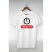 Unisex Beyaz- Power Off Baskılı Illustrasyon Tshırt Beyaz