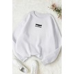Unisex Beyaz Wanted Baskılı Bisiklet Yaka Sweatshirt- Kışlık Şardonlu Kumaş Beyaz