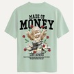 Unisex Bisiklet Yaka %100 Organik Pamuklu Kalın Dokulu Made Of Money Baskılı Oversize T-shirt - Bej Bej