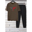Unisex Boğa Baskılı Eşofman Takımı Kahverengi