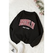 Unisex Brooklyn Baskılı Bisiklet Yaka Sweatshirt Siyah